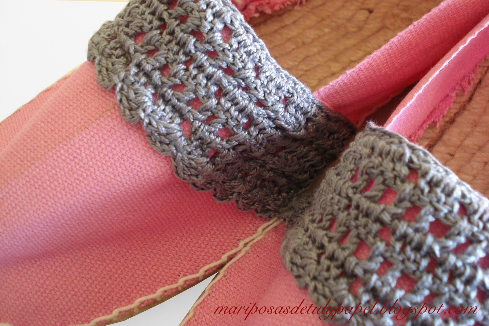 El año pasado hice unas alpargatas bordadas y otras con ganchillo que eran para fiestas, en blanco y rojo. Así que ahora, para éste veranito he hecho unas en otro color. A ver si te gustan!!